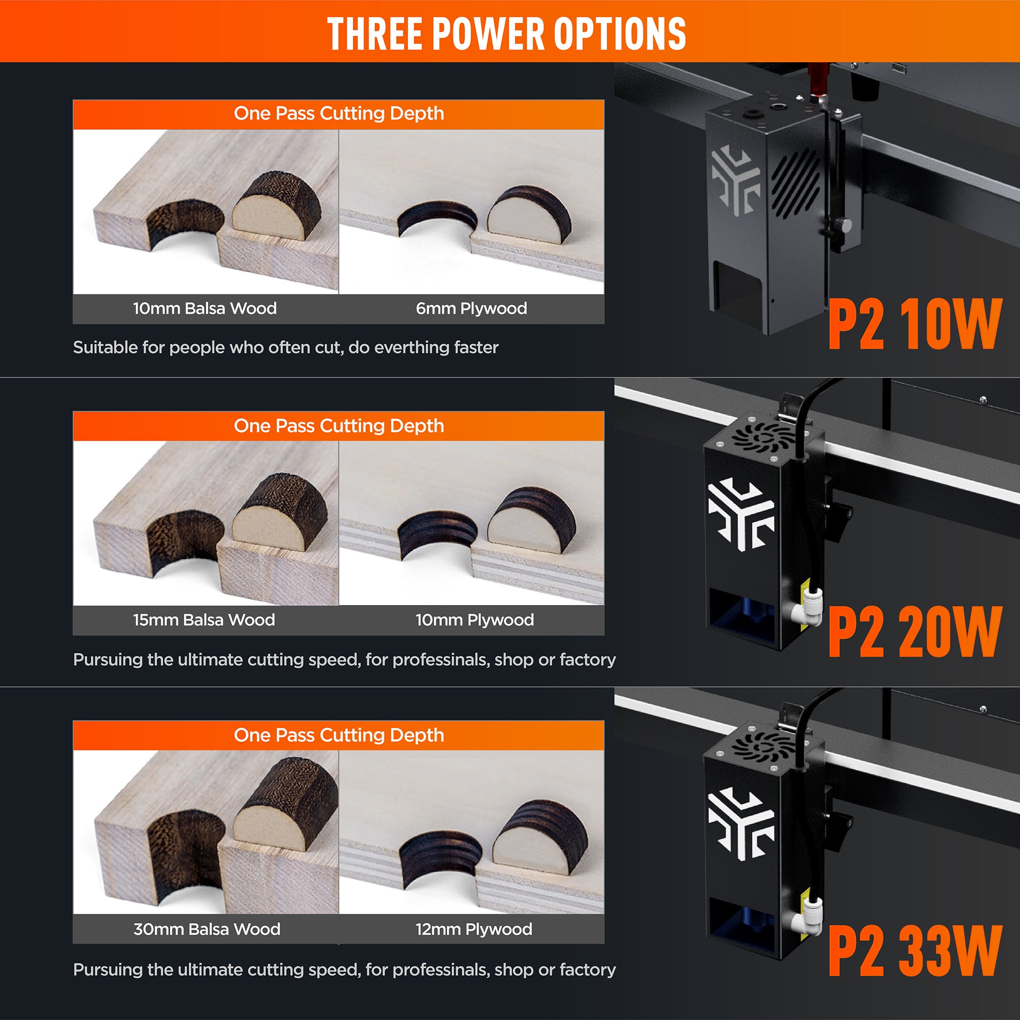 1.High Power and Efficiency: 33W laser with 30000mm/min engraving speed, 200% faster cutting than 10W machines, and 150% deeper cutting.