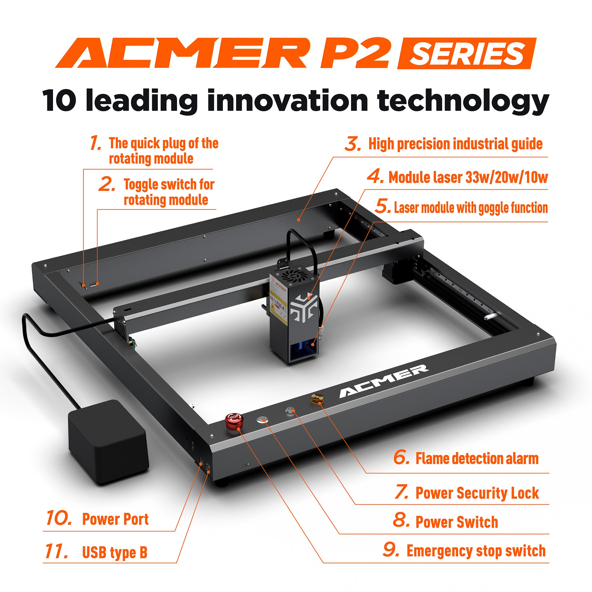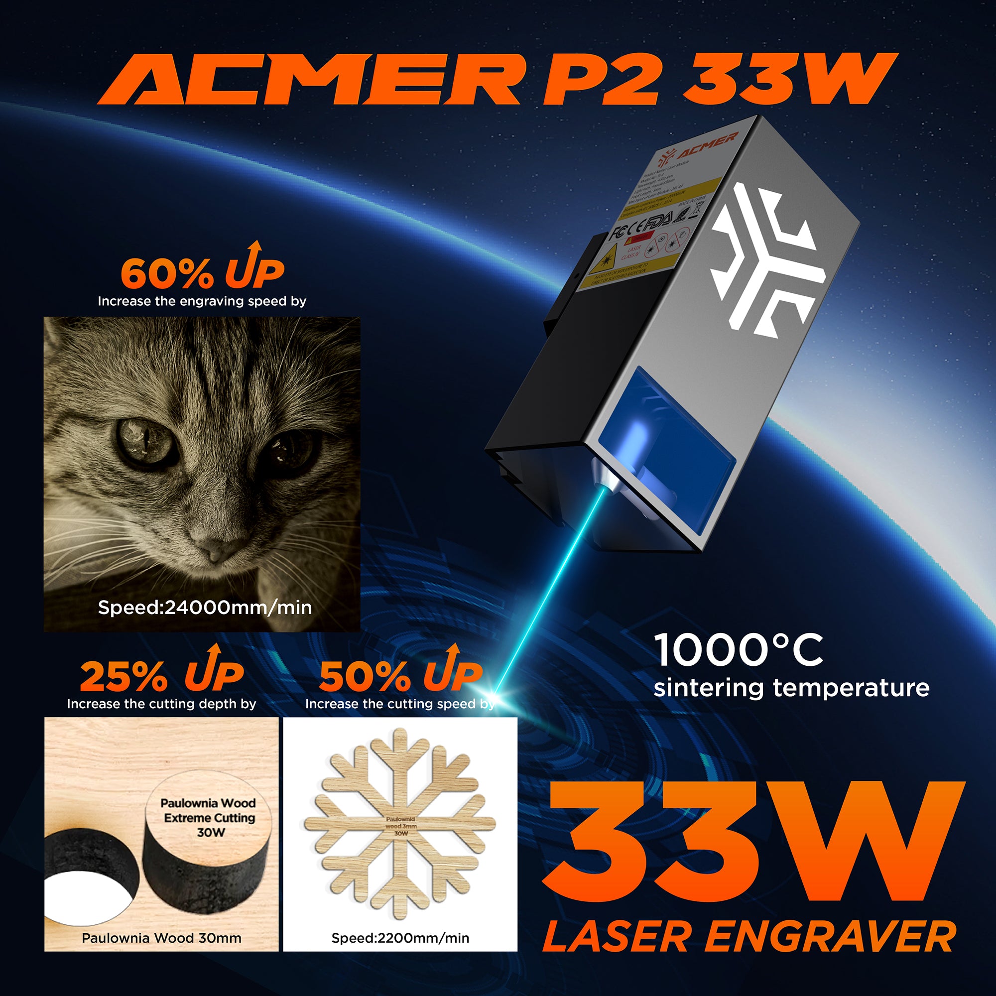 ACMER P2 33W lasers Engraver Wifi APP OfflineControl 180W CNC Blue High Speed Cutting Machine With Automatic Air Assist