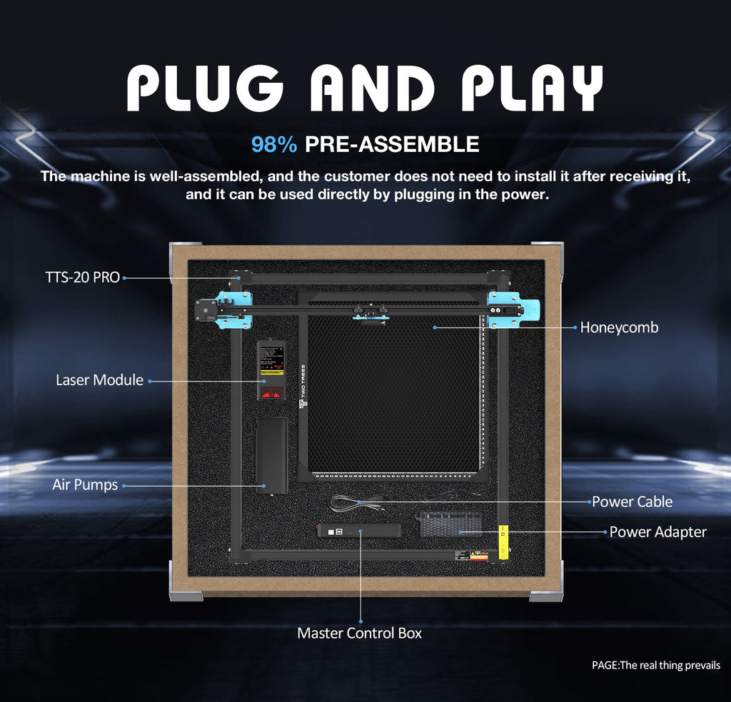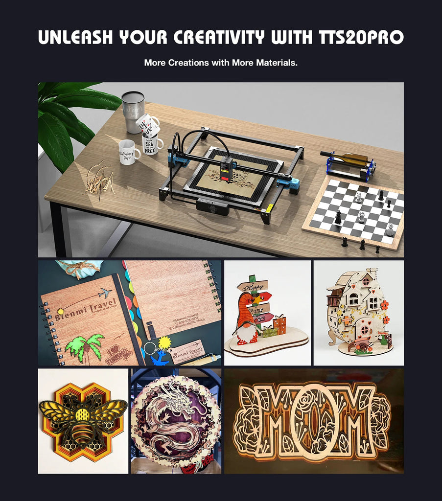 TwoTrees TTS-20 Pro 130W Powerful Laser Engraver CNC With Limit Switch Support Offline Engraving Metal Laser Engraving Machine
